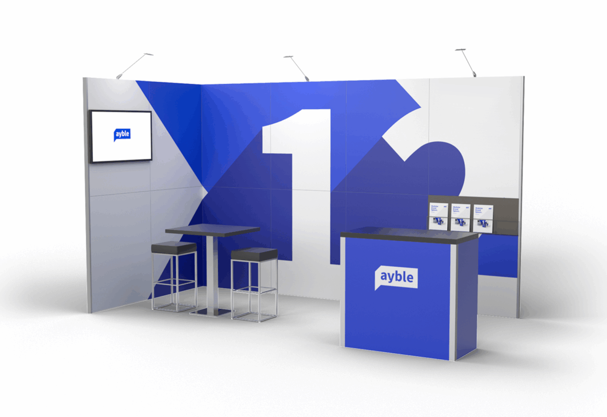 Mit diesem Eckstand setzt du dein Unternehmen perfekt in Szene und hinterlässt einen bleibenden Eindruck. Ideal für Messen, Events oder Roadshows, bei denen du auf maximale Sichtbarkeit und professionelle Präsentation setzt!