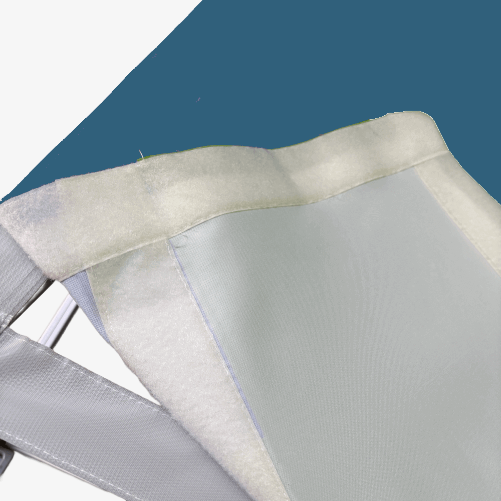 Die rückseitige Konfektion mit umlaufendem Flauschband macht den Austausch wirklich simpel: alter Druck abziehen, neuen Druck anlegen, leicht andrücken – fertig. Das Textil sitzt straff, wirkt faltenfrei und ergibt eine absolut ebene Fläche.