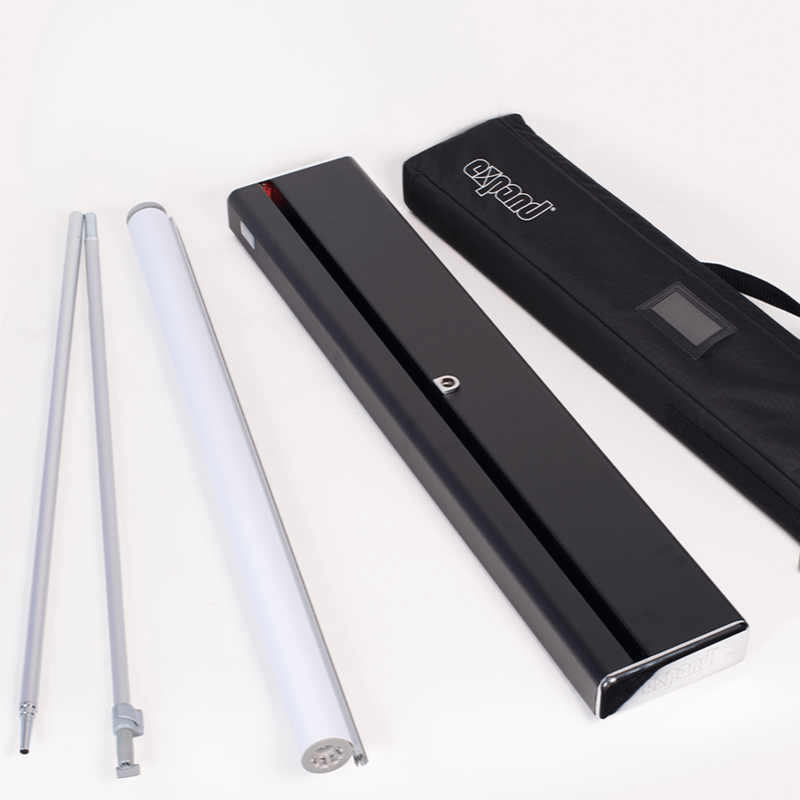 Mit der stufenlos verstellbaren Teleskopstange kannst du die Höhe des Expand M2 flexibel zwischen 160 cm und 225 cm anpassen. Diese Höhenverstellung bietet dir die Freiheit, das Display je nach Anlass und Umfeld optimal einzustellen. Ob als Blickfang auf Messen, als Informationsträger im Showroom oder als Branding-Element auf Events – das Expand M2 lässt sich perfekt an die jeweilige Präsentationsanforderung anpassen.