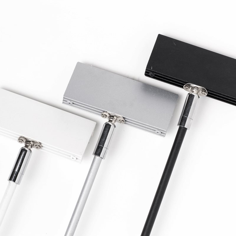Der LED Spot ist in drei edlen Farbvarianten erhältlich: Schwarz, Silber oder Weiß mit widerstandsfähiger Pulverlackbeschichtung. So passt er sich nahtlos an dein bestehendes Standkonzept an. Dank seiner durchdachten Halterung lässt sich der Spot einfach auf dem Roll-Up befestigen und bleibt auch bei häufigem Einsatz stabil.