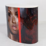 Die LUMALINE Messetheke ist nicht nur funktional, sondern auch ein echtes Design-Highlight. Die elegante, geschwungene Form und die optionale Beleuchtung machen die Theke zum Mittelpunkt jeder Präsentation. Mit ihrer Beleuchtung zieht sie alle Blicke auf sich und sorgt dafür, dass deine Botschaften besonders wirkungsvoll präsentiert werden. Die Thekenvorderseite besteht aus klarem, bedruckbarem Polycarbonat und bietet eine großzügige Werbefläche für Logos und Grafiken. So kannst du deine Marke eindrucksvoll und einzigartig präsentieren.