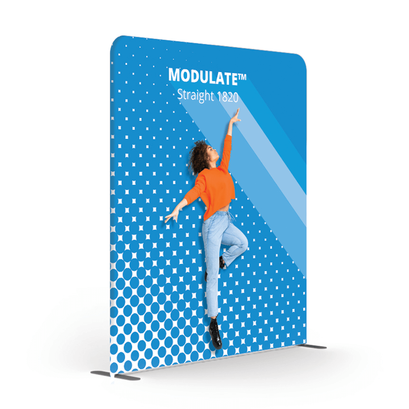 Die Messewand Modulate ist eine innovative Lösung für flexible und individuell gestaltbare Messestände. Das durchdachte Messewand Stecksystem basiert auf Aluminiumrohren, die mit einem hochwertigen, ein- oder beidseitig bedruckten Textilbezug überzogen werden. Dank der integrierten Magnetverbindungen lässt sich jeder Rahmen im Handumdrehen mit weiteren Modulate-Elementen kombinieren, sodass du unzählige Gestaltungsmöglichkeiten hast. Ob als einzelnes Display oder als großflächige Messewand – mit Modulate setzt du deine Marke perfekt in Szene.
