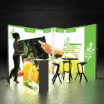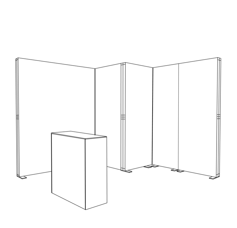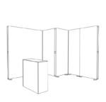 Mit einer breiten LED-Messewand zieht dieses Set maximale Aufmerksamkeit auf sich. Die gleichmäßig ausgeleuchteten Textilgrafiken sorgen für eine brillante Darstellung deiner Werbebotschaft, während das Türmodul im Inneren des Standes für eine geschlossene, private Fläche sorgt – ideal für Besprechungen oder zur Aufbewahrung von Material.