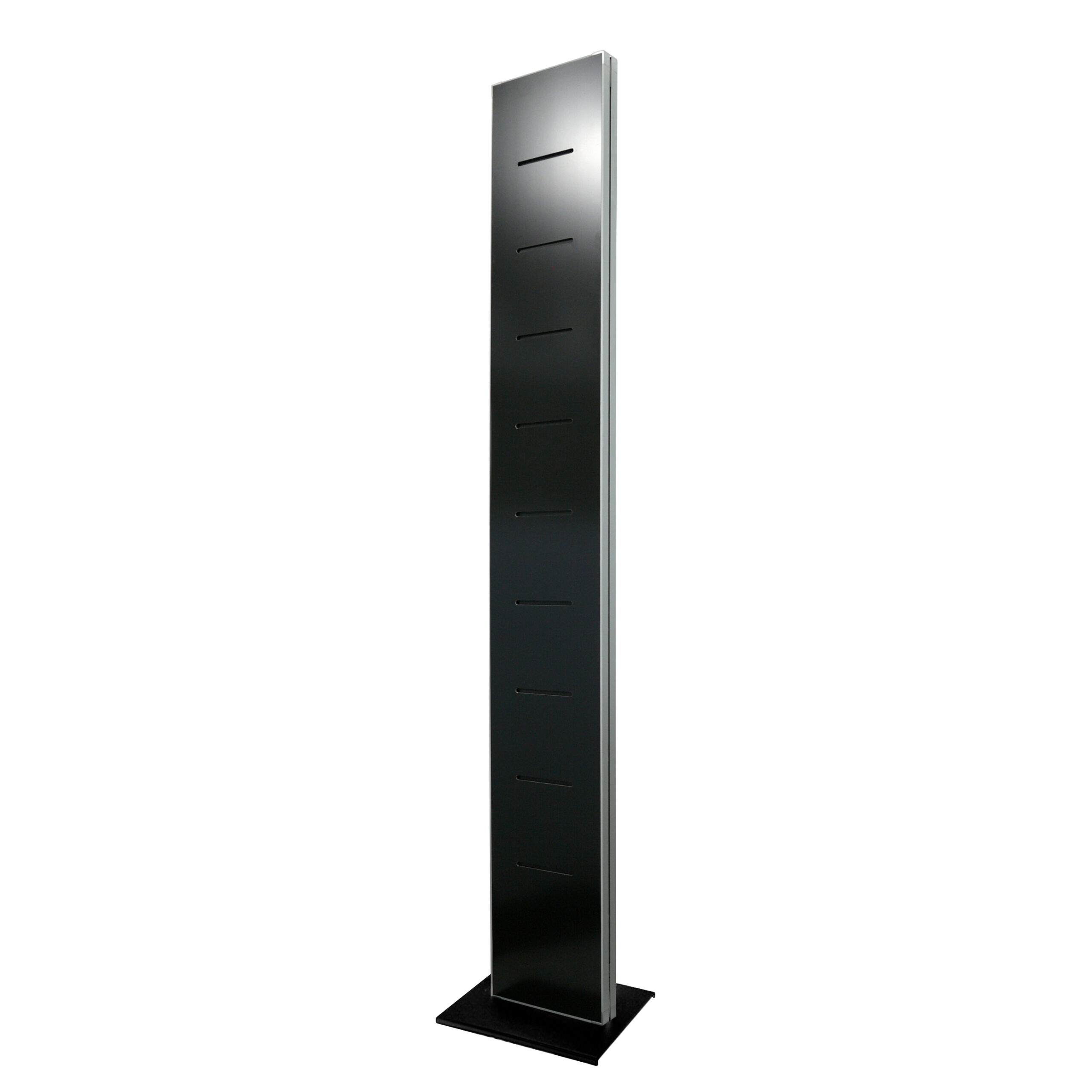 Der Dacapo iPoint steht sicher auf seiner robusten, rechteckigen Stahlbasis, die mit einer Kunststoffabdeckung versehen ist. Diese stabile Konstruktion ist für den dauerhaften Einsatz in stark frequentierten Bereichen ausgelegt und bietet ein hohes Maß an Standfestigkeit. Ob in Empfangsbereichen, auf Messen oder in Verkaufsräumen – der Dacapo iPoint bleibt stets an seinem Platz und sorgt dafür, dass deine Materialien optimal präsentiert werden.