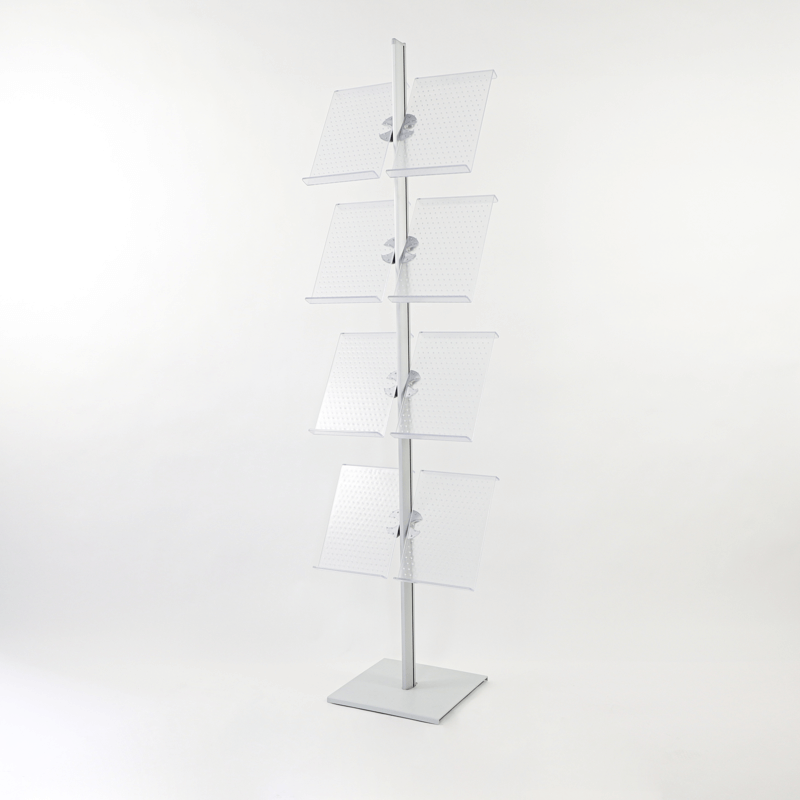 Der Prospektständer Palo verfügt über acht Ablagen im Format DIN A4.