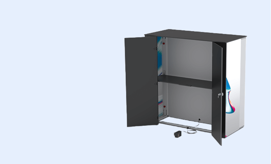Unser Angebot geht weit über den Onlineshop hinaus: Wir unterstützen dich bei der Projektierung mit 3D-Visualisierungen, erstellen professionelle Grafikvorlagen und bieten einen umfassenden Aufbauservice. Damit dein Messestand immer einsatzbereit ist, kümmern wir uns auch um den Transport und die Einlagerung.