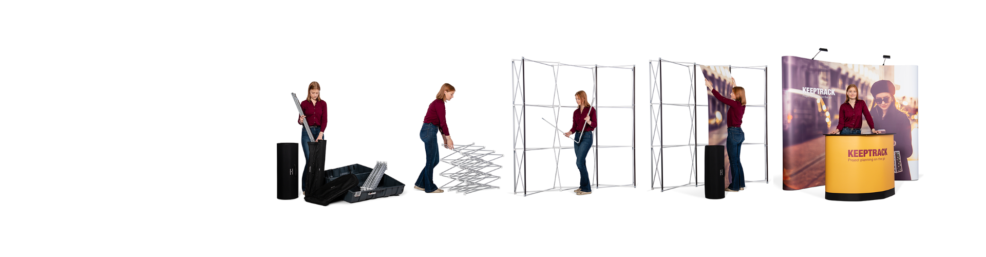 Unser Angebot geht weit über den Onlineshop hinaus: Wir unterstützen dich bei der Projektierung mit 3D-Visualisierungen, erstellen professionelle Grafikvorlagen und bieten einen umfassenden Aufbauservice. Damit dein Messestand immer einsatzbereit ist, kümmern wir uns auch um den Transport und die Einlagerung.