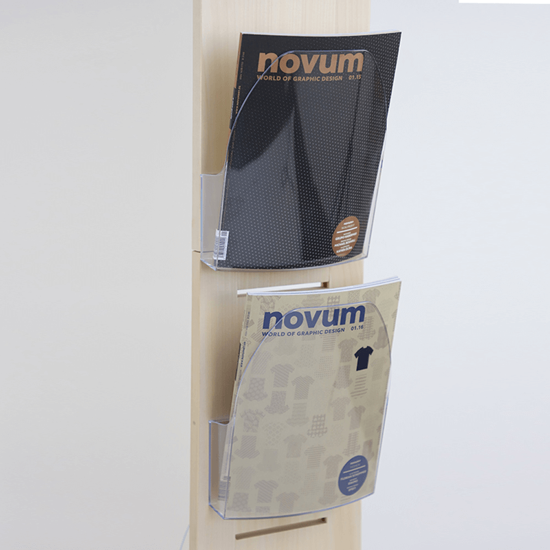 Ob für Flyer, Broschüren oder Kataloge – unsere Prospekthalter bieten dir die Möglichkeit, Printmaterialien übersichtlich und griffbereit zu präsentieren. Das ansprechende, natürliche Design fügt sich harmonisch in jedes Standkonzept ein und vermittelt eine klare Botschaft: Deine Marke denkt an die Umwelt und setzt auf Qualität.